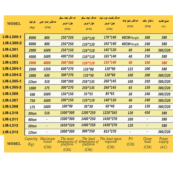 آسانسور صنعتی هیدرولیک نوع قیچی مدل LIR-L304-1