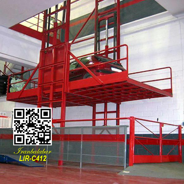 آسانسور اتومبیل بر مدل LIR-C412 یک نوع سیستم الکتروهیدرولیک جک از کنار با ظرفیت حمل 2750 kg و حداکثر ارتفاع جابجایی 28 متر (2800 cm) می باشد و جهت حمل کلیه خودروهای سواری و SUV با قابلیت جانمایی در طبقات پارکینگ ساختمانهای تجاری و اداری می باشد .