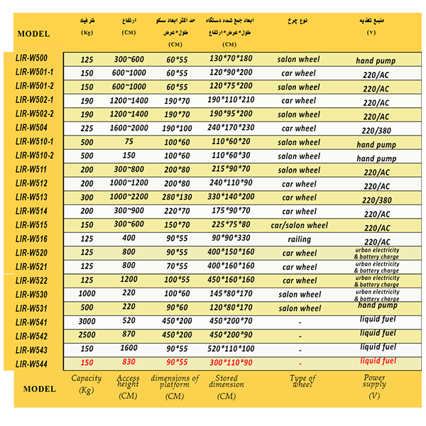 بالابر پشت خودرو نیسان مدل LIR-W544 در گروه بالابرهای با قابلیت جابجایی ( متحرک ) می باشد و امکان جابجایی تا ارتفاع حداکثر 830 cm را به آسانی فراهم می نماید .